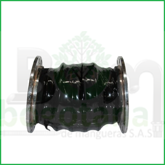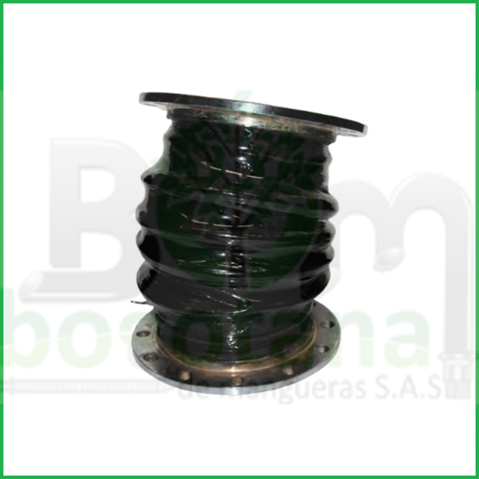Manguera de conexión flexible para junta de dilatación, con bridas metálicas en ambos extremos. Diseñada para absorber movimientos axiales, laterales y angulares entre tramos de tubería, reduciendo vibraciones, compensando desalineaciones y previniendo daños por expansión térmica o presión. Diseñada para el paso de aire a baja presión.