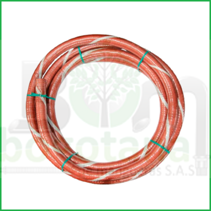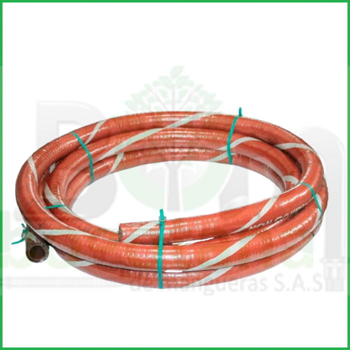 Está recubierta con material ignífugo o aislante térmico que evita la propagación de la llama y resiste la degradación por calor, recomendada para fluido de agua caliente o refrigerante en la industria del hierro y del acero, donde se requiere una manguera resistente a la temperatura y alto amperaje.