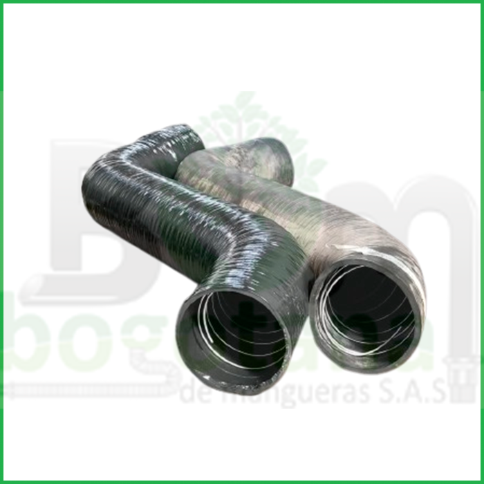 Gracias a su resorte metálico integrado, esta manguera mantiene su forma estructural, lo que la hace ideal para aplicaciones exigentes donde se requiere flujo constante y seguro. Se fabrica en caucho negro o bicolor según el requerimiento del cliente.