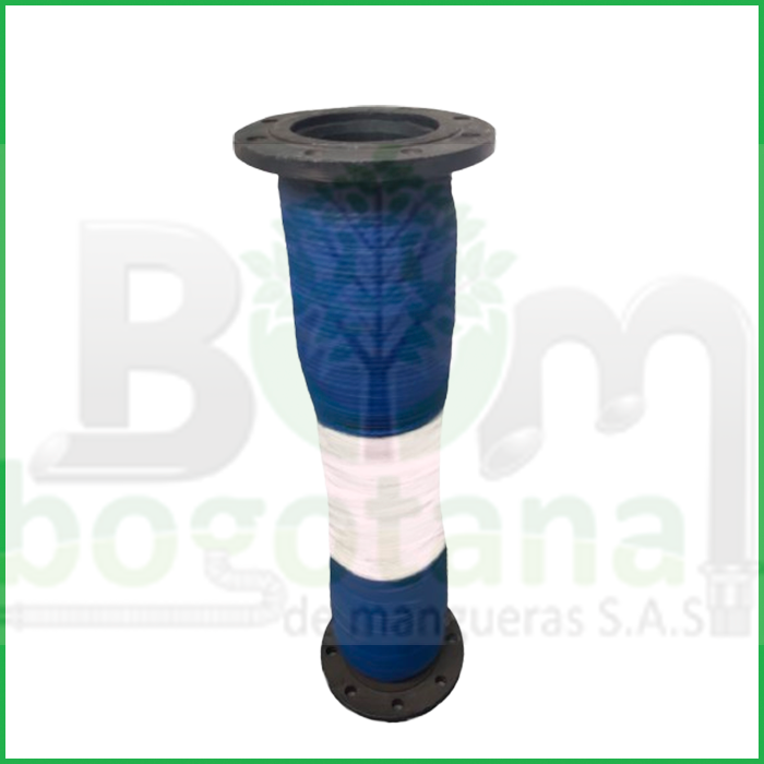 Diseñada para aplicaciones donde la seguridad eléctrica y la resistencia al fuego son fundamentales, esta manguera está fabricada con compuestos especiales de caucho no conductivo y recubierta con una capa anti flama en cinta de fibra de vidrio , lo que la hace ideal para entornos industriales de alto riesgo. Recomendada para el manejo de agua caliente o fluidos refrigerantes en la industria del hierro y del acero, especialmente en zonas donde se requiere una manguera con alta resistencia térmica y a corrientes de alto amperaje. Equipada con bridas integradas en caucho vulcanizado, garantiza una conexión firme, segura y resistente a la vibración, facilitando su instalación en sistemas de bombeo, conducción de fluidos o ventilación industrial.
