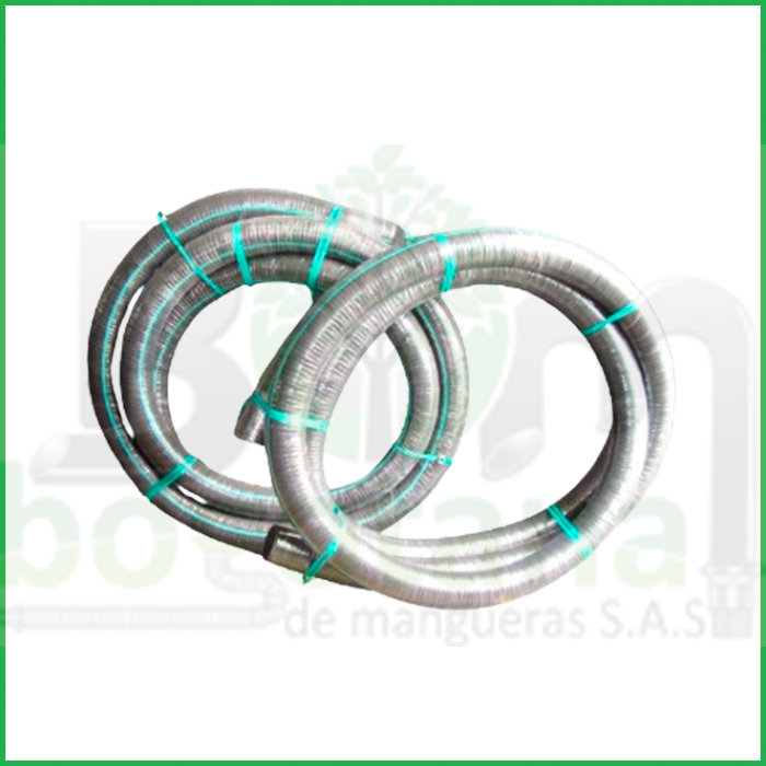 *TEMPERATURA: Resiste 100ºC en trabajo continuo. *PRESIÓN: Se fabrica para resistir desde 100 PSI a 150 PSI. *DIÁMETRO Y LONGITUD: Se fabrica en tramos hasta 15 mts en diámetros de 1″ a 6″ y en tramos hasta 30 mts de 1″ a 5″ pulgadas con una presión máxima de 150 PSI.
